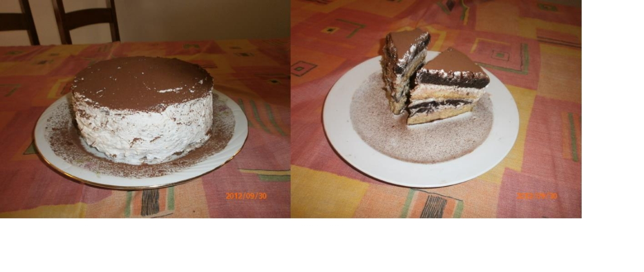 A tojássárgáját habosra verem a cukorral. Hozzáadom a lisztet és a kakaóport, és végül hozzáforgatom a tojásfehérjét amit már kemény habbá vertem. Kivajazott kilisztezett tortaformában 20-25 percig 180 fokon megsütöm.